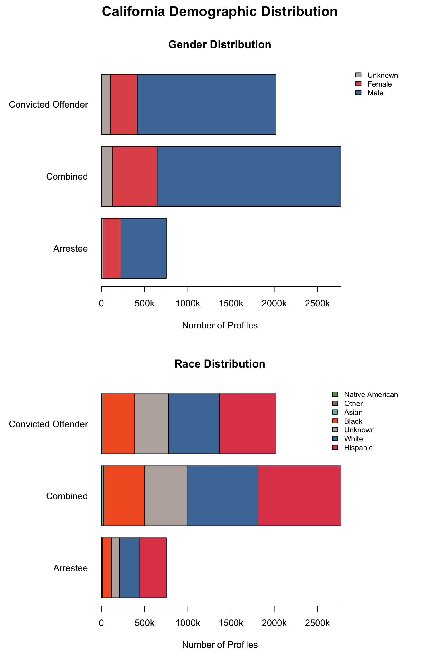 Texas only reported data for “Convicted Offender” and “Arrestee” separately. We calculate Combined totals.