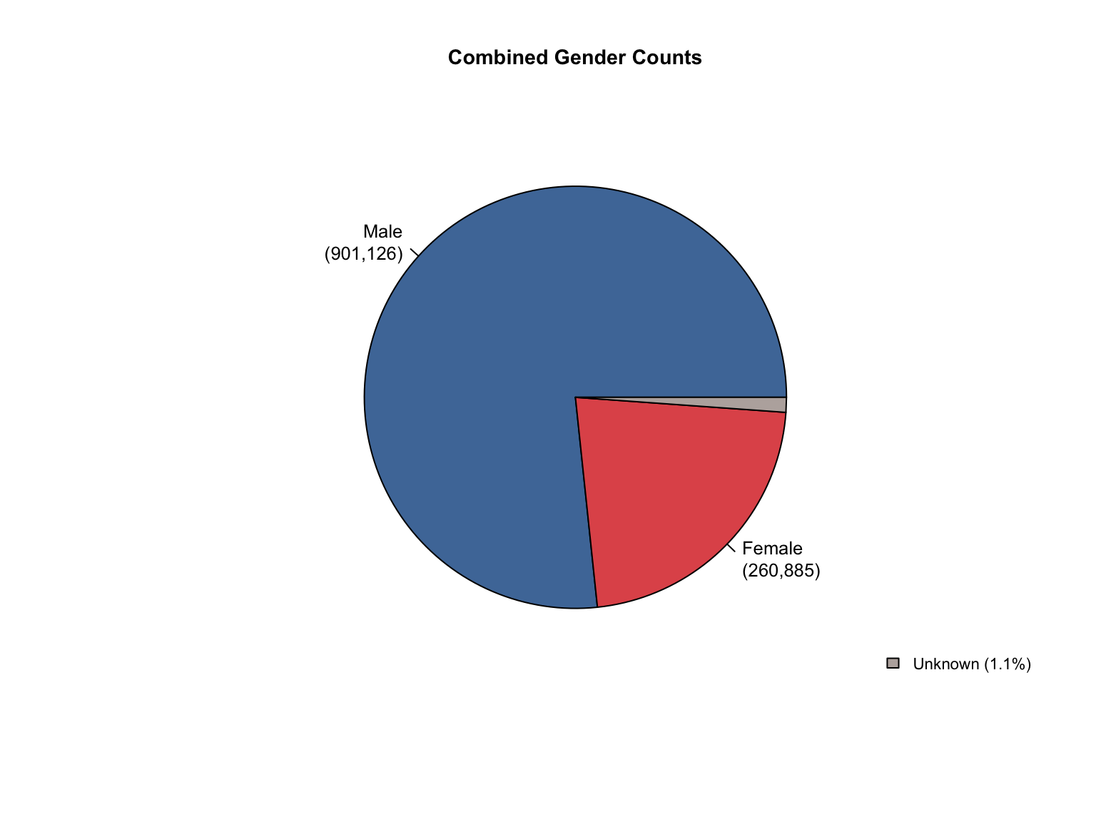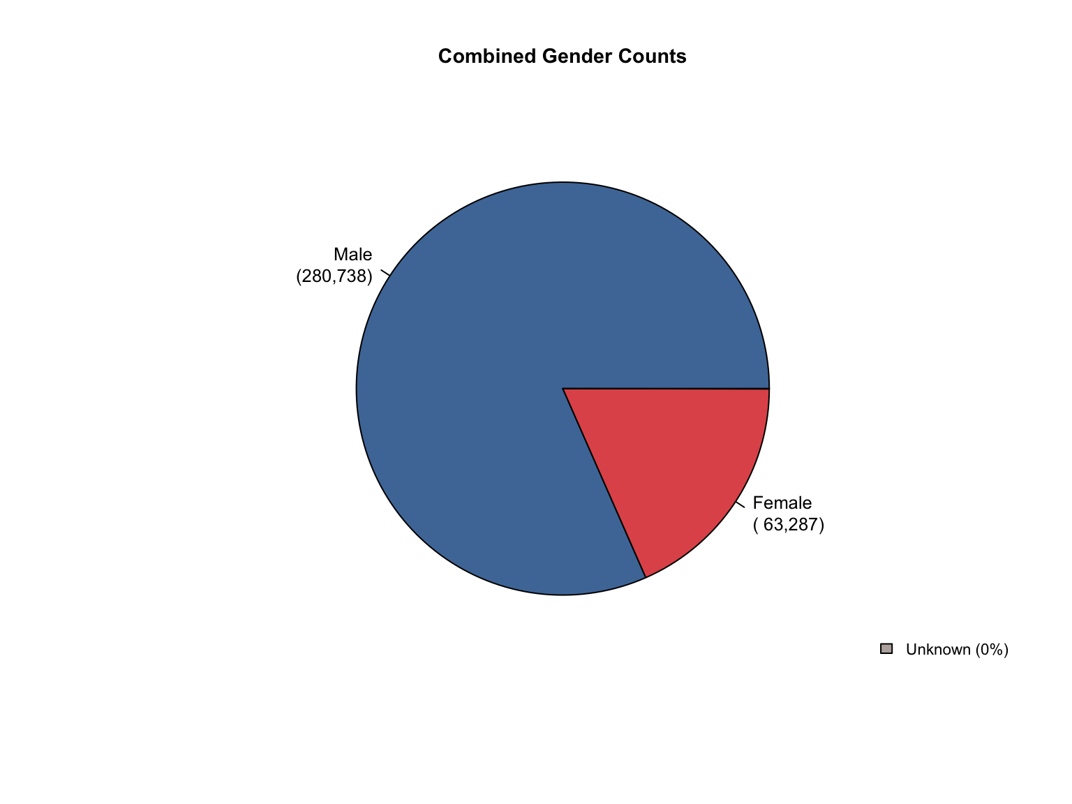 Overview: Texas provides counts only for gender and race categories. The Male gender is missing in the dataset. The state uses non-standard terminology that requires conversion and needs Combined totals and percentages calculated.