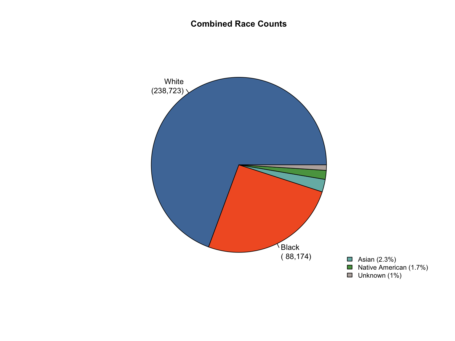 # Derive percentages from countstx_clean <-add_percentages(tx_clean)cat("✓ Added percentages for all demographic categories\n")# Check percentage consistencycat("Percentage consistency check:\n")cat(paste("All percentages sum to ~100%:", percentages_consistent(tx_clean), "\n\n"))# Show current data availabilitycat("Final data availability:\n")cat(paste("Race data:", report_status(tx_clean, "race"), "\n"))cat(paste("Gender data:", report_status(tx_clean, "gender"), "\n"))