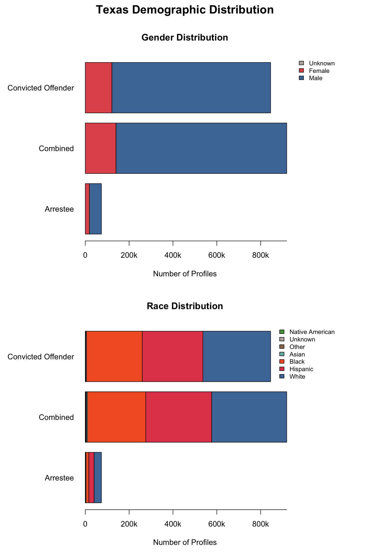 Texas uses “Offenders” instead of “Convicted Offender” and “Caucasian” instead of “White”.