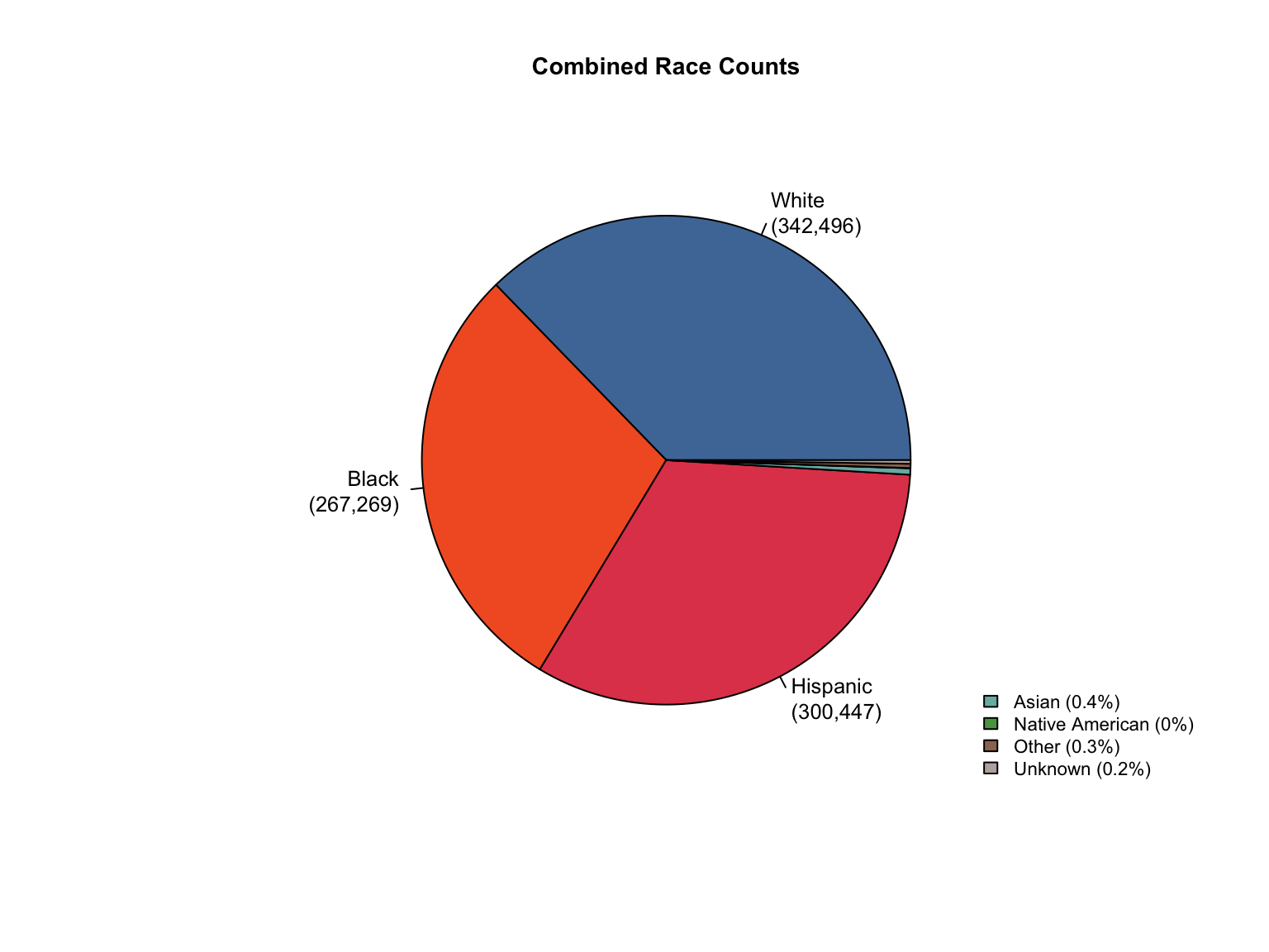 Texas race count is inconsistent, with a significant number of profiles not reported in any racial category.