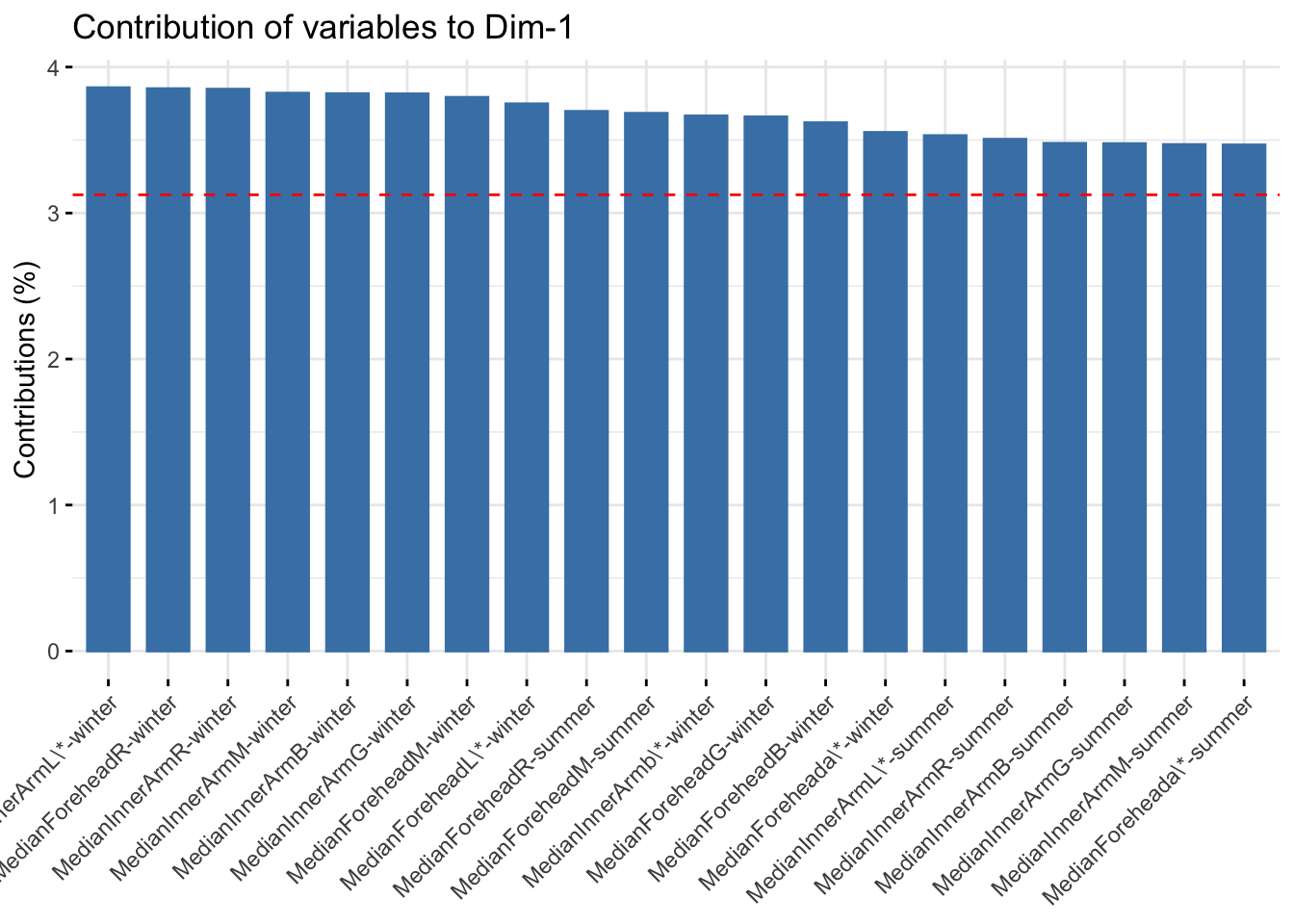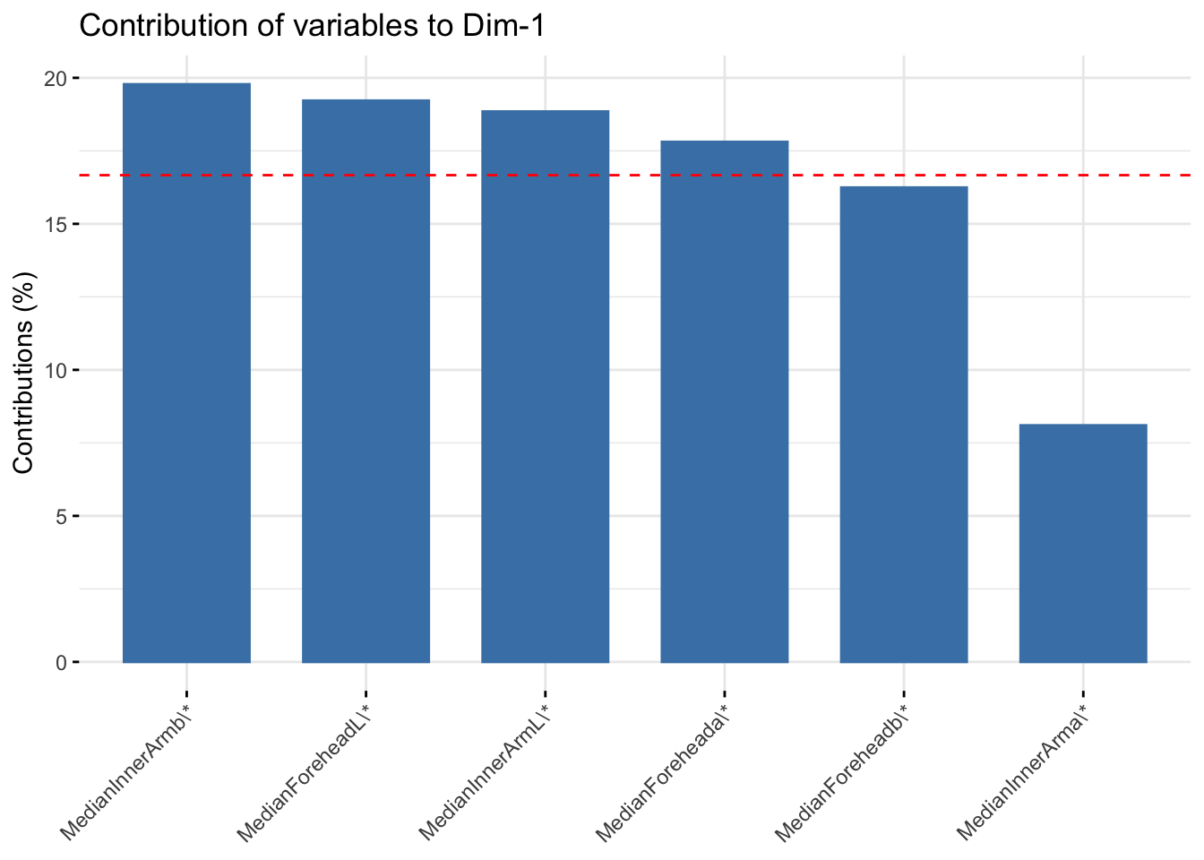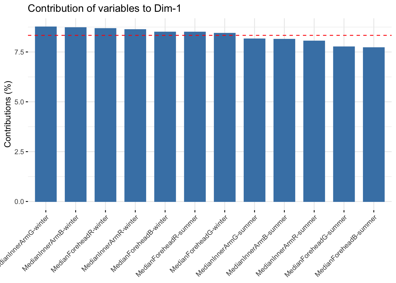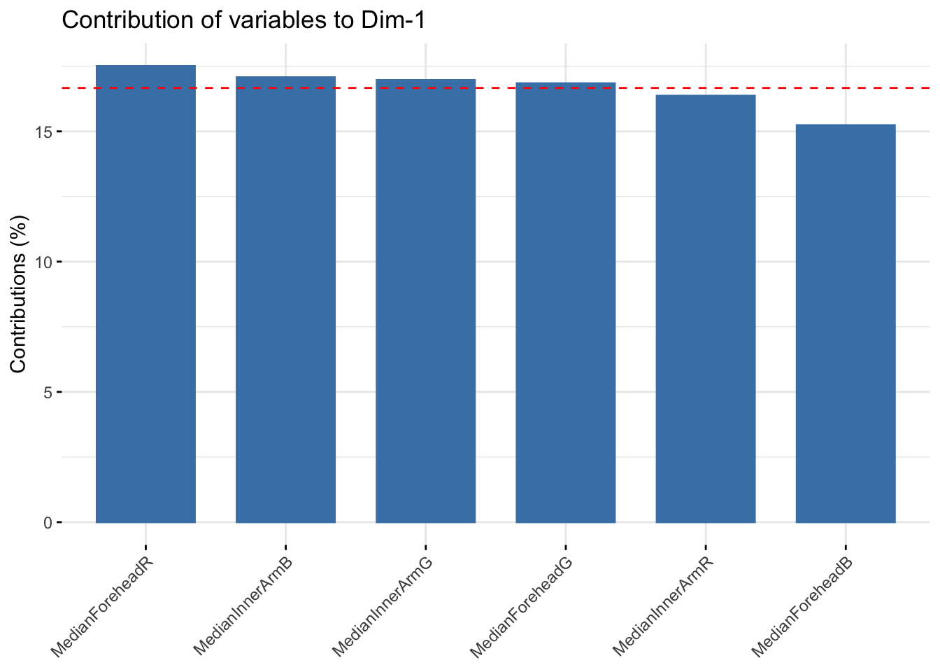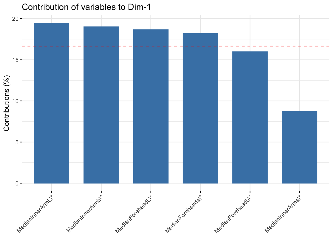 fviz_contrib(six_cie_pca, choice = "var", axes = 1, top = 10)