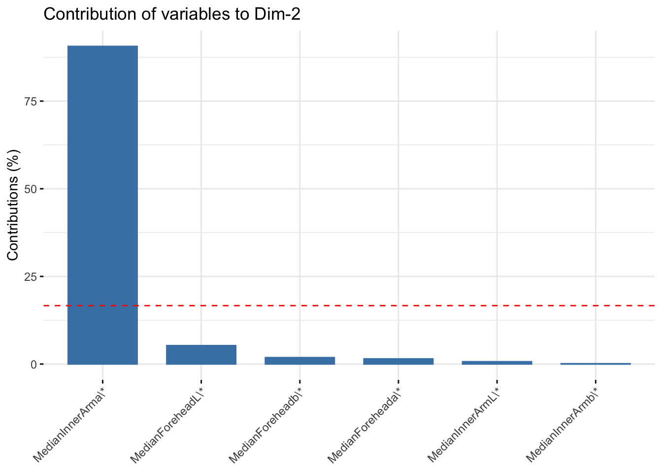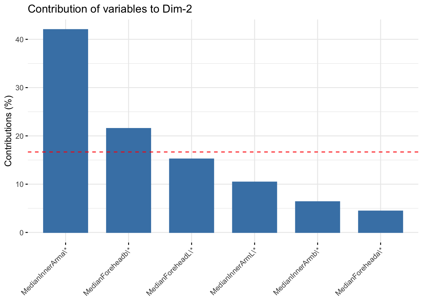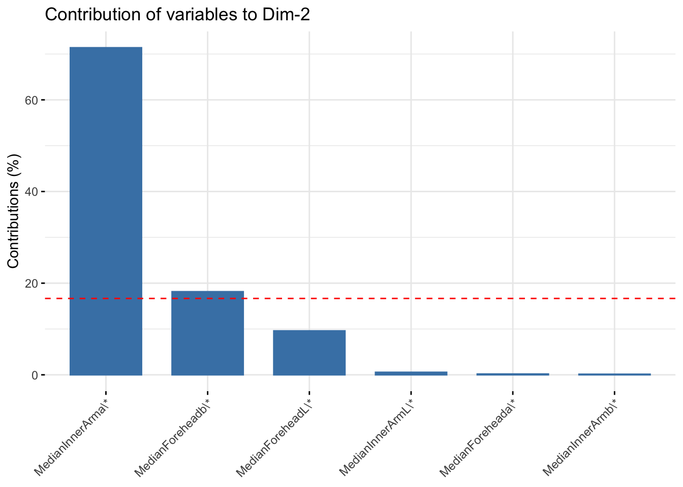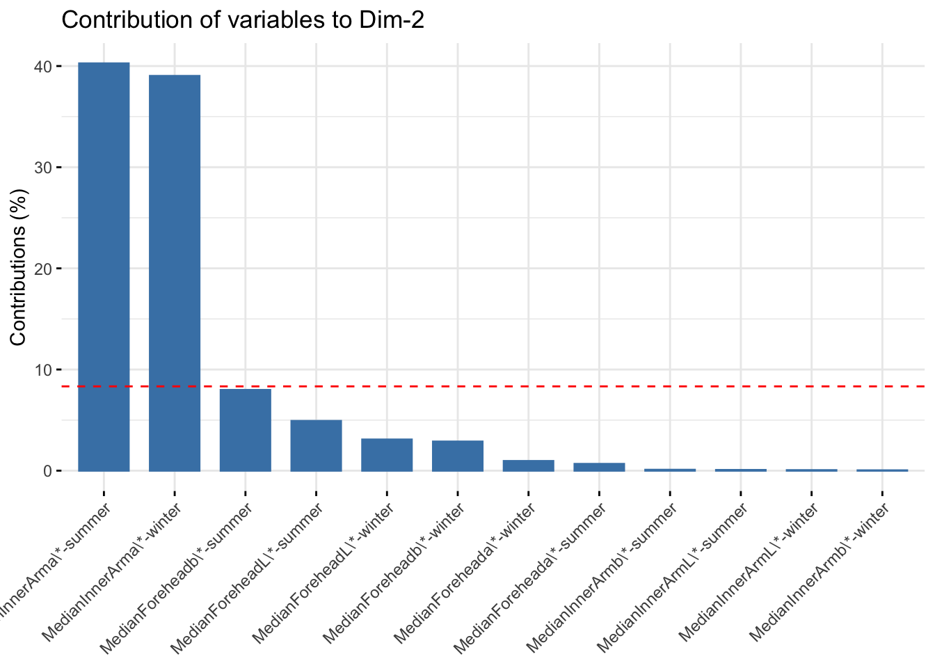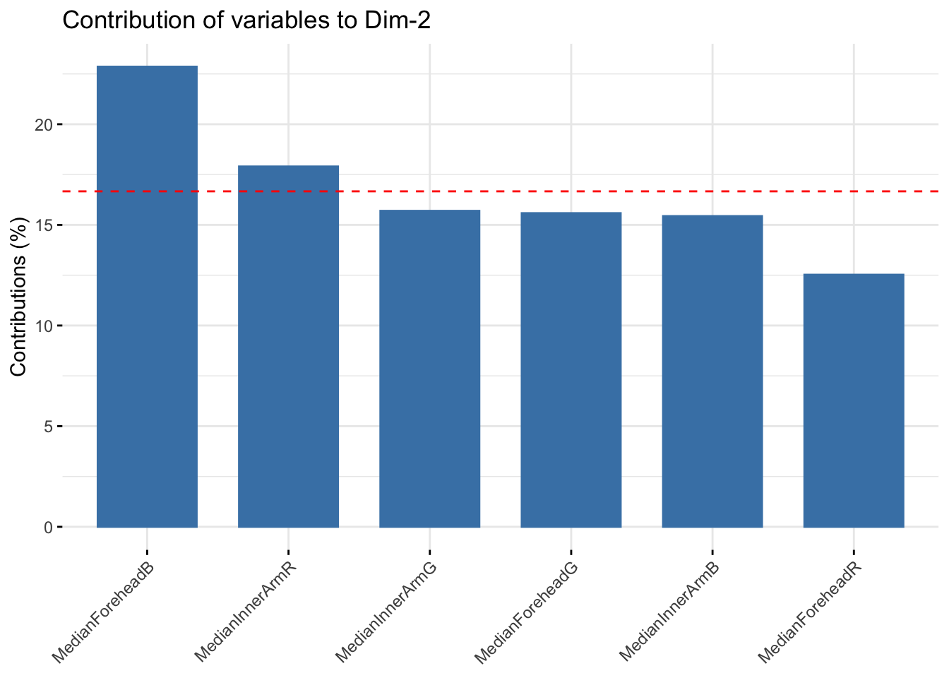 fviz_contrib(six_cie_pca, choice = "var", axes = 2, top = 10)