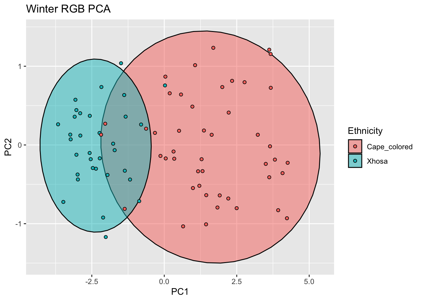 ggplot(winter_cie_new, aes(x=PC1, y=PC2, col = Ethnicity, fill = Ethnicity)) +