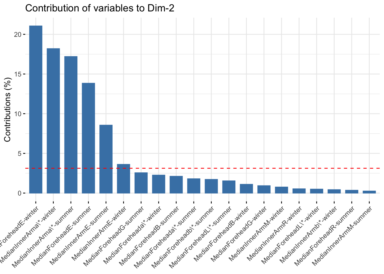 fviz_contrib(winter_cie_pca, choice = "var", axes = 2, top = 10)