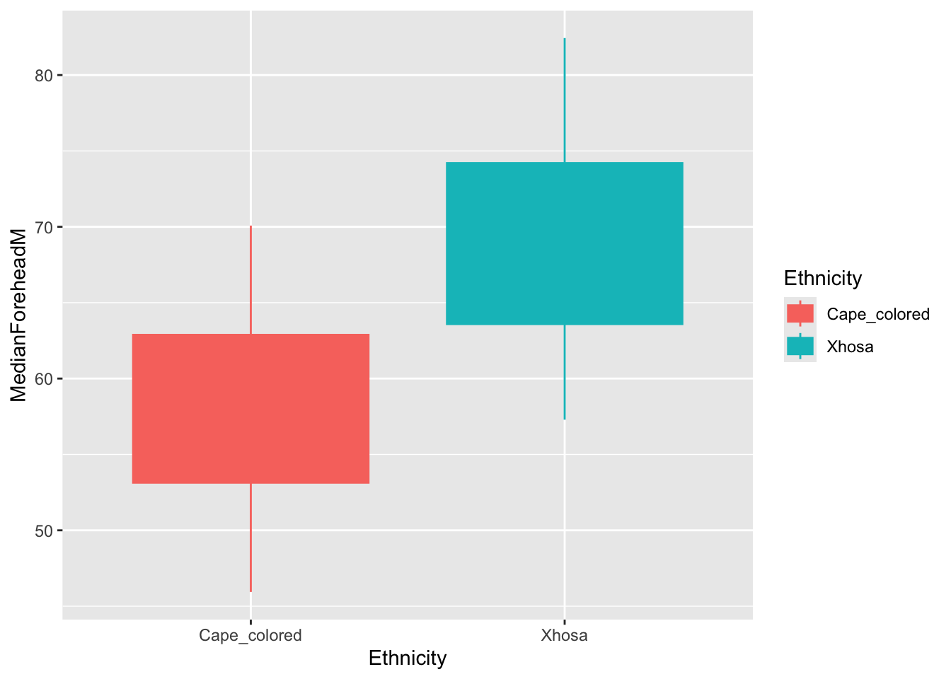 ggplot(winter_data, aes(x = Ethnicity, y = MedianForeheadM, fill = Ethnicity)) +