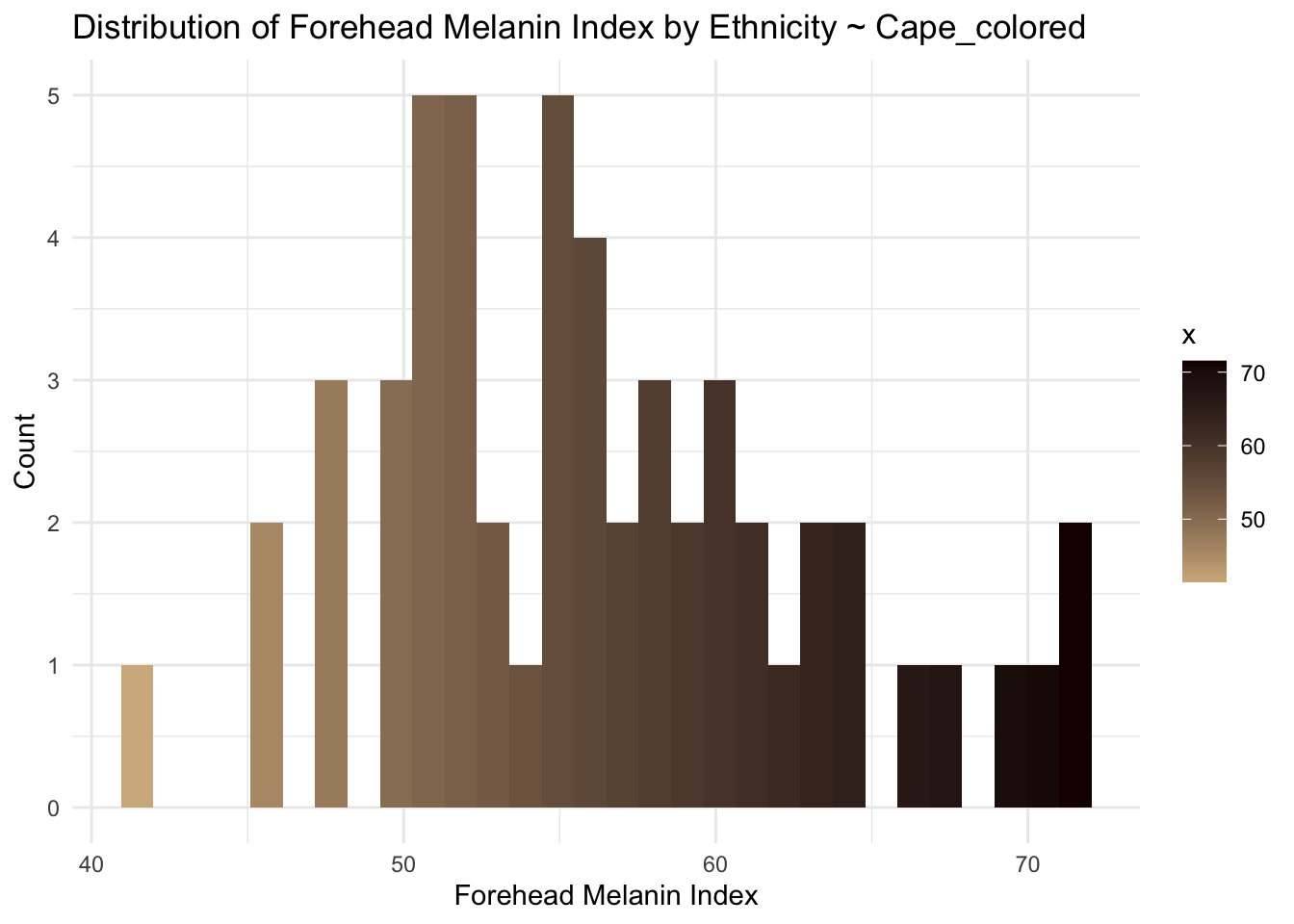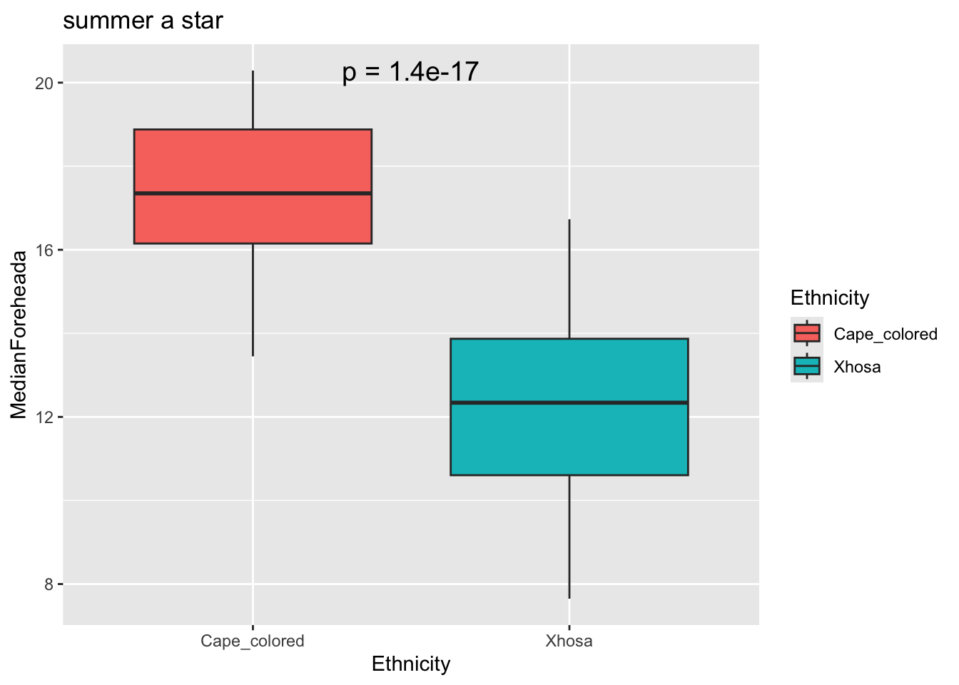 Mresult <- t.test(MedianForeheadM ~ Ethnicity, data = summer_data)