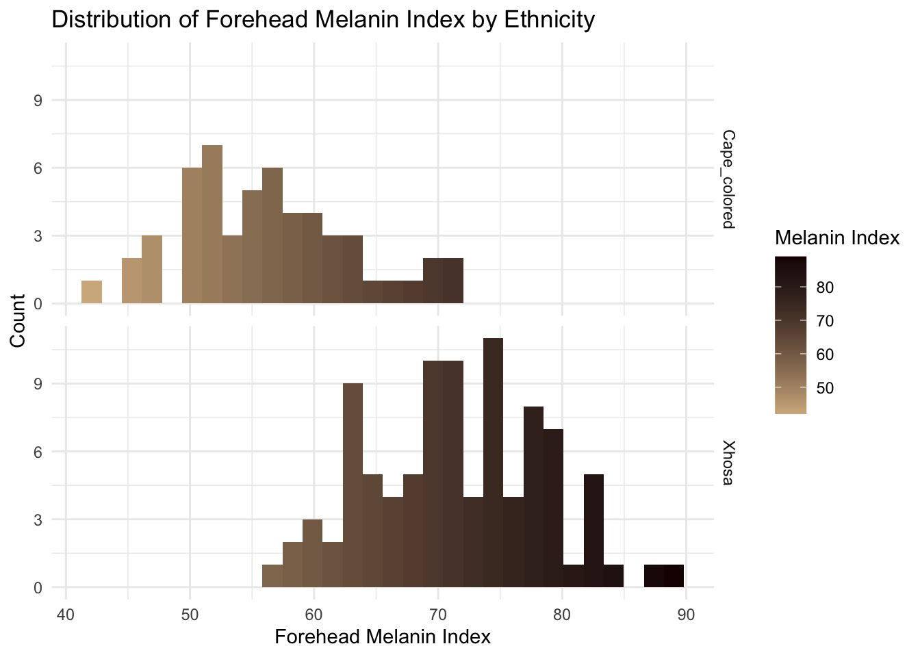 Mresult <- t.test(MedianForeheadM ~ Ethnicity, data = winter_data)