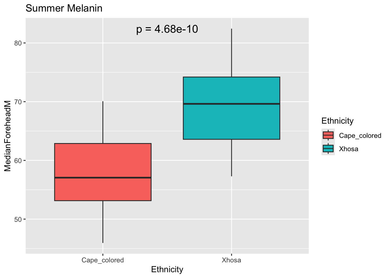 annotate("text", x = 1.5, y = max(summer_data$MedianForeheadM),
