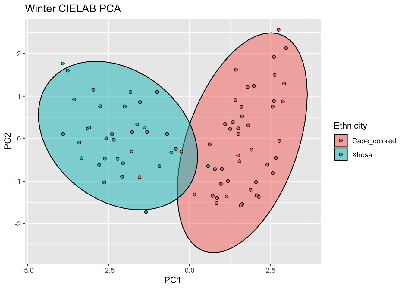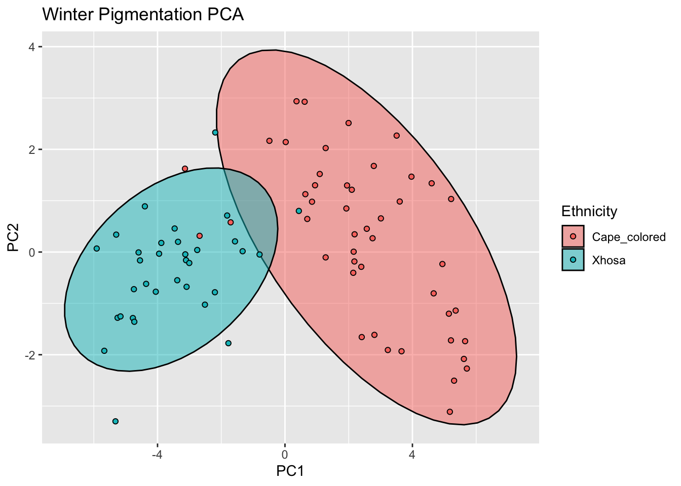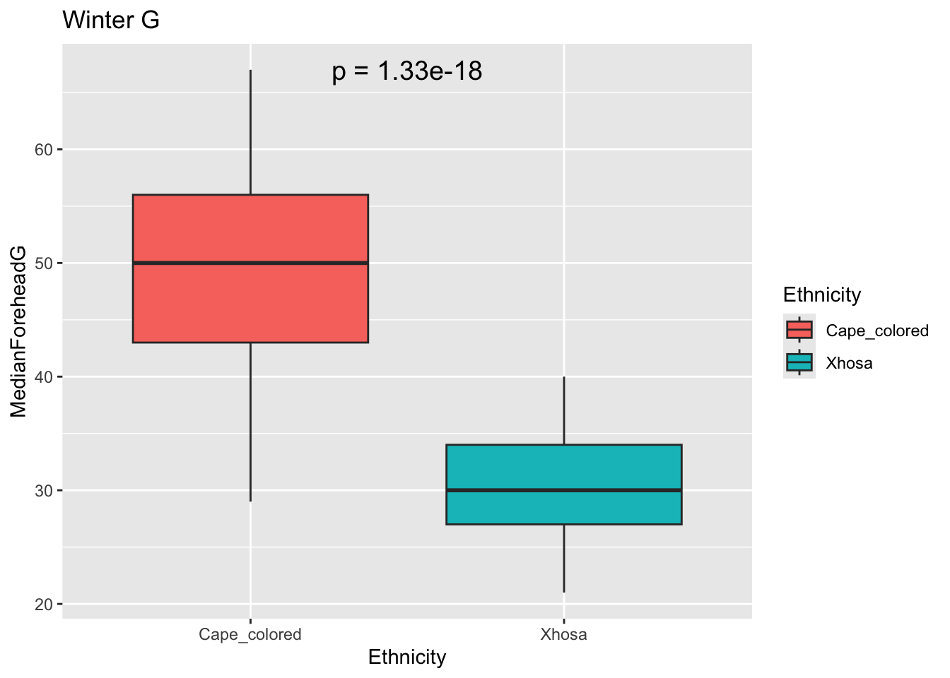 winterG <- t.test(MedianForeheadG ~ Ethnicity, data = winter_data)
