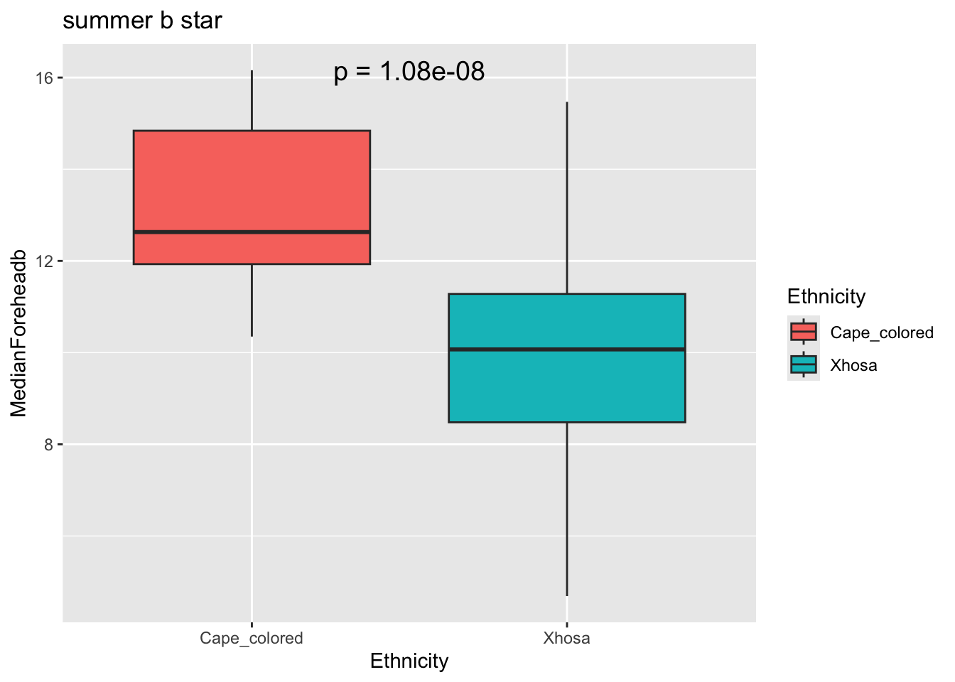 annotate("text", x = 1.5, y = max(summer_data$MedianForeheadb),